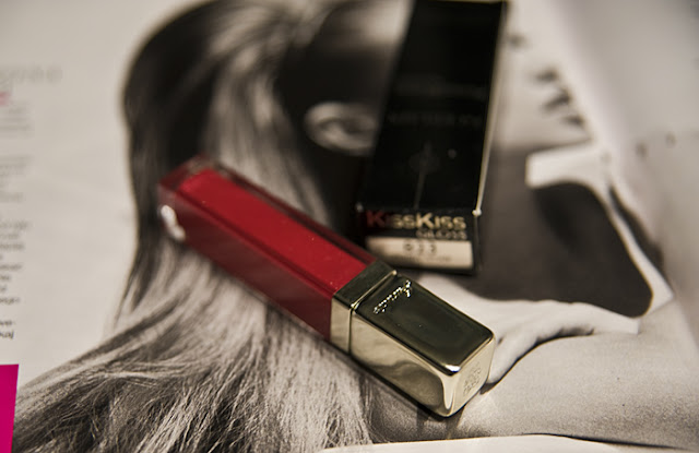 Drugim produktem, z którego cieszę się niezmiernie jest błyszczyk Guerlain Kiss Kiss w odcieniu Poppy (kupiony za 34 zł).